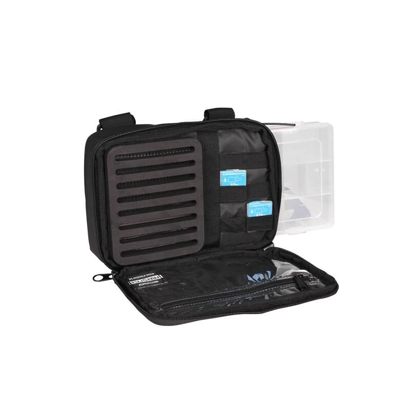 De Side Pouch 12 is een compact tasje dat om een FreeStyle tacklebox heen is ontworpen. De voorkant kan volledig opengeritst worden waardoor het grote rig board toegankelijk wordt voor het opbergen van al je kunstaas en haken. Tevens is hier plaats voor 6 FreeStyle Terminal Boxes voor het transport van kleinmateriaal. In de voorkant zit een waterdicht compartiment voor het veilig opbergen van documenten en/of portemonnee. Aan de voorkant zitten tevens riempjes waaraan je je tang kunt bevestigen en een D-ring om de karabijnhaak van je tang aan te haken. Wordt geleverd met FreeStyle Tackle Box.