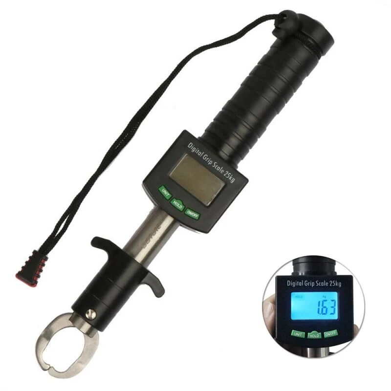 De Jenzi Lip Grip Digi Scale is perfect voor het landen vis en tegelijkertijd te wegen. Met deze lipgrip kun je vis wegen tot 25kg en heeft een lengte van 28cm. De lipgrip is voorzien van een LCD scherm waar je gewicht in kunt aflezen. Deze tool heeft een auto shutdown functie die ervoor zorgt dat de batterij niet wordt leeggetrokken bij onnodig gebruik. Geleverd excl. Batterij 2x 1.5v AAA